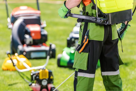 equipamentos de trabalho, como grama, adubo